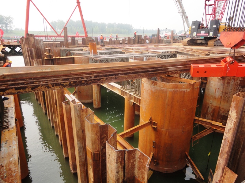 8、吸泥、支撑安装过程中必须安排专人在顶层值班了望;专人观察围堰状态及动静。